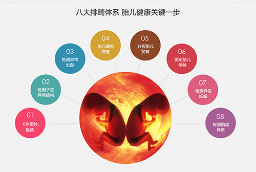 三、高清四维彩超超越了传统超声的限制。它除了能够显示出腹中胎儿的实时动态图像外,还能够多方位、多角度的观察宫内胎儿的生长发育情况,对胎儿 的体表进行检查,如唇裂,脊柱裂,大脑、肾、心脏、骨骼发育不良等,为早期诊断胎儿先天性体表畸形和先天性心脏疾病提供准确的科学依据。