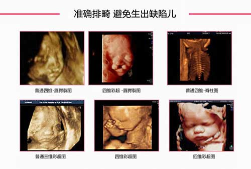 三、高清四维彩超超越了传统超声的限制。它除了能够显示出腹中胎儿的实时动态图像外,还能够多方位、多角度的观察宫内胎儿的生长发育情况,对胎儿 的体表进行检查,如唇裂,脊柱裂,大脑、肾、心脏、骨骼发育不良等,为早期诊断胎儿先天性体表畸形和先天性心脏疾病提供准确的科学依据。